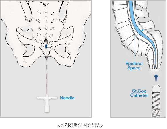 ● 신경성형술(PEN) 디스크나 협착증으로 인한 통증이 발생한 경우 특수한 관(카테터)을 이용하여 통증의 원인이 되는 부위 가까이 접근 하여 신경 부위의 염증이나 신경부종 등을 가장 효과적으로 감소시켜주는 시술입니다. 경막외 신경성형술은 미국과 유럽에서 연간 150만 명이 혜택을 본 신의료기술입니다. 이 시술의 특징은 흉터가 없다는 것과 큰 부담없이 반복적으로 시행할 수 있다는 것입니다. ![]() ![]() ![]() ● 효과적인 환자 - 척추관협착증 - 여러 마디의 퇴행성 척추 병변 - 만성 디스크로 인한 요통과 하지 방사통 - 수술 후 유착에 의한 통증 발현이 의심 - 수술할 정도로 심하지 않은 퇴행성 디스크 환자 - MRI 정밀검사에도 척추통증의 원인이 뚜렷하지 않은 환자 ![]() ● 장점 - 국소 마취로 시행함하며, 시술시간이 짧고(30분) 절개를 하지 않아 시술 후 1~2시간 안정을 취한 뒤 일상생활 복귀가 가능합니다. - 수술이 어려운 고령이나 내과질환 환자 등에 안전하게 시행이 가능합니다. - 특히 여러 마디에 걸쳐서 병소가 있는 경우에 유용합니다. - 1mm 카테터를 통해 통증 원인을 직접 제거하여 정상조직의 손상이 거의 없습니다. - 국소마취로 이루어져 전신마취에 대한 부담이 없습니다. - 수술에 대한 두려움이 있는 환자에게 적합한 시술입니다. - 만성적인 요통환자, 디스크, 척추관협착증 환자 등에게 효과적입니다. - 수술 후 재발되었거나 통증이 남아있는 환자에게도 효과적입니다. ● 신경성형술 체크리스트 - 허리를 구부리면 편하고, 펴면 아프다. - 바로 눕거나 엎드려 자기가 힘들다. - 단단한 방바닥 보다 푹신한 곳이 더 편하다. - 등과 허리가 앞으로 점점 더 굽는것 같다. - 다리가 저려 걷다 쉬다를 반복한다. - 엉치가 빠질듯이 아프다. - 계단을 내려갈 때 허리에 힘이 들어가고 다리가 당긴다. - 다리의 감각이 무디다. - 날이 흐리면 특히 허리가 뻣뻣하고 다리가 시리고 아프다. |
