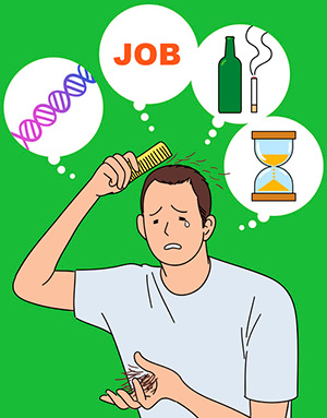 ● 원인과 진단 ● 유전적 원인 일반적인 남성적 탈모의 원인으로써, 대머리의 가족력이 있는 남성에게서 주로 나타납니다. 대표적 남성호르몬인 테스토스테론(Testosterone)의 작용으로 발생하는 것으로 알려져 있습니다. ![]() ● 자가 면역 질환 자가 면역이란 자기 스스로가 자신의 조직이나 성분에 대한 면역기능을 가지는 것을 말합니다. 즉, 자신의 면역세포가 자신의 조직을 공격하는 것인데요, 그 대상이 모발이 되는 경우 탈모를 유발하게 됩니다. 주로 원형 탈모의 원인이 되는 것으로 알려져 있습니다. ● 내분비 질환 체내에서 생성되는 호르몬의 양이나 작용에 문제가 발생하는 현상입니다. 이 호르몬의 이상에 의해 모공이 정상적으로 기능을 하지 못해 머리가 빠지는 현상이며, 이 경우는 탈모뿐만 아니라 다른 신체적 문제를 동반하는 경우가 많습니다. ● 기타 영양 결핍, 약물 사용 이나 출산, 수술, 과도한 다이어트 등의 육체적 스트레스, 사회생활에서 필연적으로 따라오는 정신적 스트레스 등도 탈모의 원인이 될 수 있습니다. |